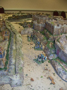 Between the lines we see Gallic units rushing to attack the Romans while the relief force attacks. In the real battle the Gauls forced the population of the town of Alesia to leave the town. These poor sould perished as the Romans refused to let them through the lines and the Gauls refused to let them back into the town. Government hasn’t changed much.
