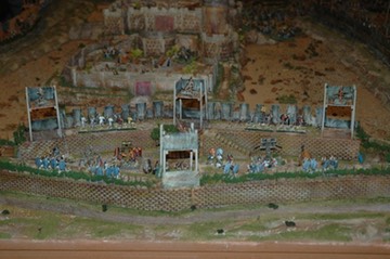 Here is another large redoubt located beneath the temporary camp of Gauls. There were so many Gauls arriving at Alesia before the battle that the Gauls had to erect a small camp just out side the gate. The cavalry were sent out to gather a relief force from all over Gaul before Caesar could close the siege lines.